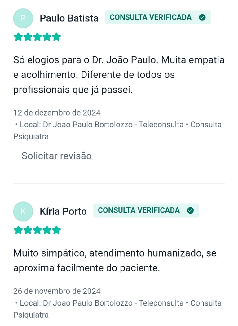 O Dr. João Paulo é a nossa principal referência em Psiquiatria Infantil, atuando também no atendimento de pacientes adultos. Com formação sólida pela UNIFESP e ampla experiência no manejo do Transtorno do Espectro Autista (TEA) e do TDAH infantil, ele proporciona uma condução mais eficaz dos casos, além de oferecer suporte essencial aos pais em todo o processo de tratamento.